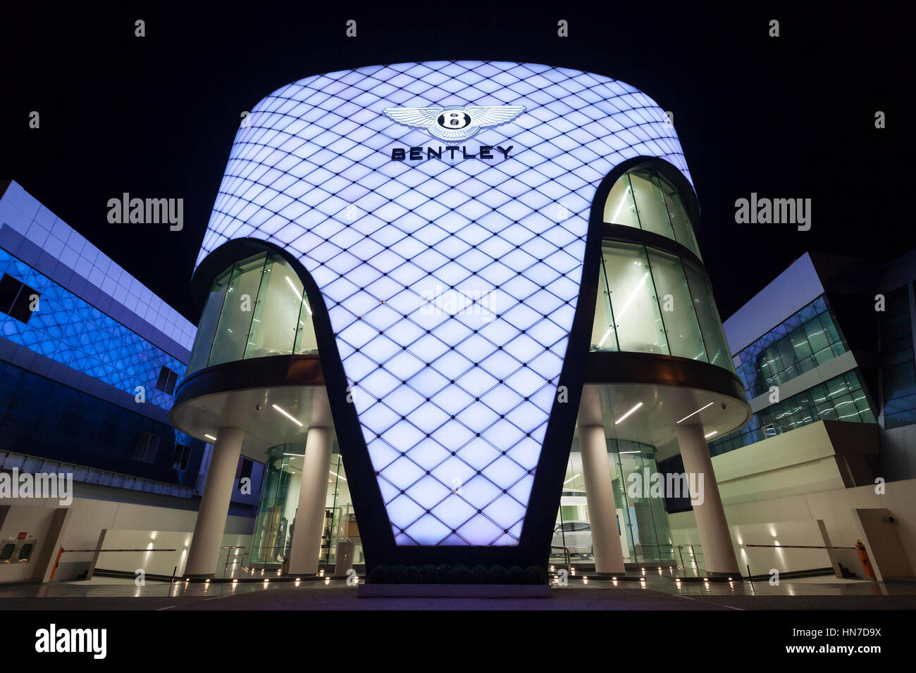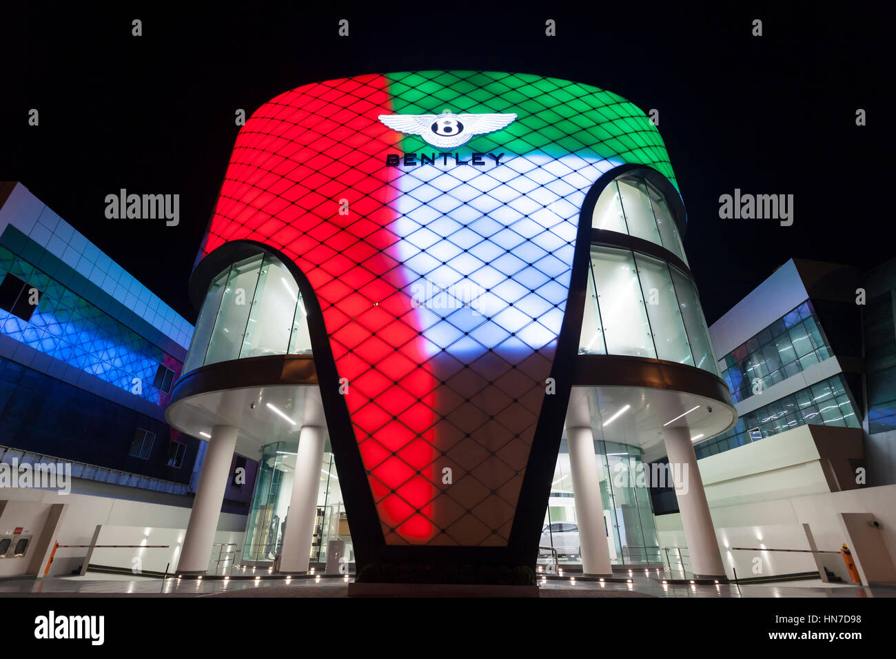 Dubai Uae Dec 5 2016 Bentley Dealership In Dubai Al Habtoor Motors Illuminated At Night Dubai United Arab Emirates Stock Photo Alamy